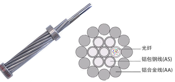OPGW光纜,Optical Fiber Composite Overhead Ground Wire(也稱光纖復(fù)合架空地線)。把光纖放置在架空高壓輸電線的地線中,用以構(gòu)成輸電線路上的光纖通信網(wǎng),這種結(jié)構(gòu)形式兼具地線與通信雙重功能,一般稱作OPGW光纜。