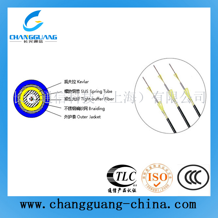 鎧裝配線光纜由光纖、不銹鋼螺旋管、凱夫拉、不銹鋼編織網(wǎng)、外護(hù)套組成。光纜具有優(yōu)良的機(jī)械特性,易于布線及后續(xù)加工,是通信領(lǐng)域優(yōu)良的傳輸介質(zhì)。產(chǎn)品在國防通信、廣播電視系統(tǒng)、樓宇智能控制、電力控制系統(tǒng)、交通通訊系統(tǒng)、城域網(wǎng)和局域網(wǎng)中廣泛應(yīng)用。