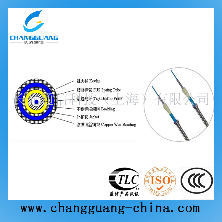 防靜電型鎧裝光纜是在螺旋鋼管鎧裝型光纜的基礎上在護套外加一層導靜電作用的銅鍍鎳編織網(wǎng),并且改用耐化學腐蝕塑膠做護套,使光纜可以在強化學環(huán)境中長期使用,是石化領域傳感專用的光纜。